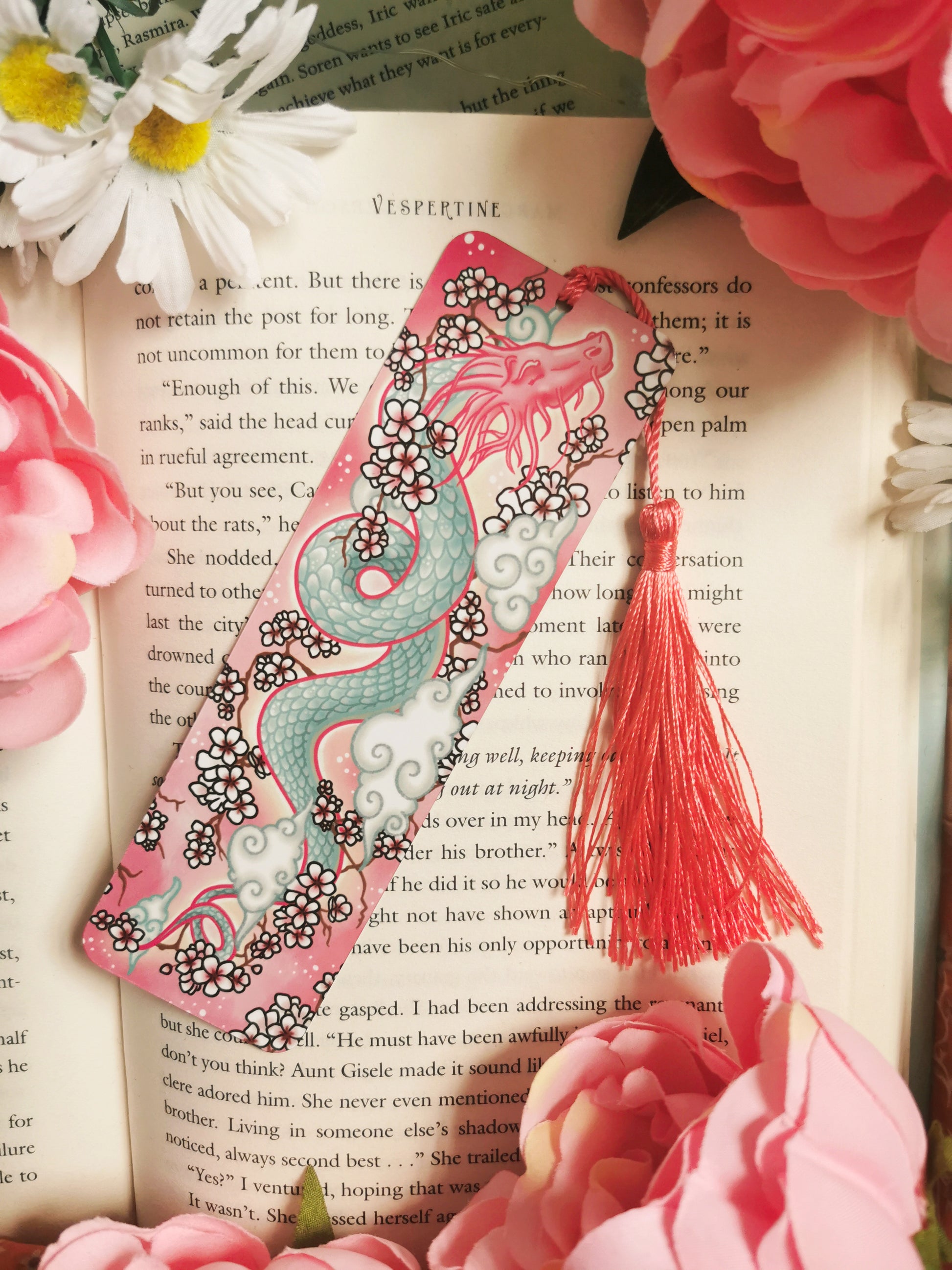 Original Illustration printed on high quality 6” x 2” aluminium 0.5mm with pink/blush tassel.