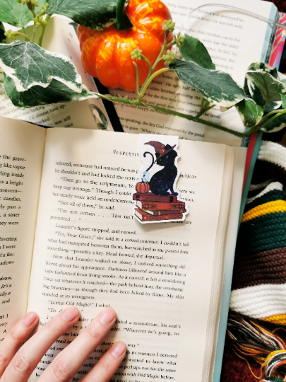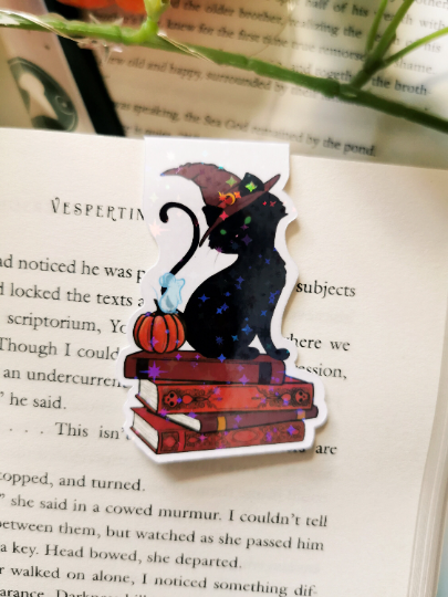 Mark your place in your book or planner with this Cat Witch holographic magnetic bookmark.