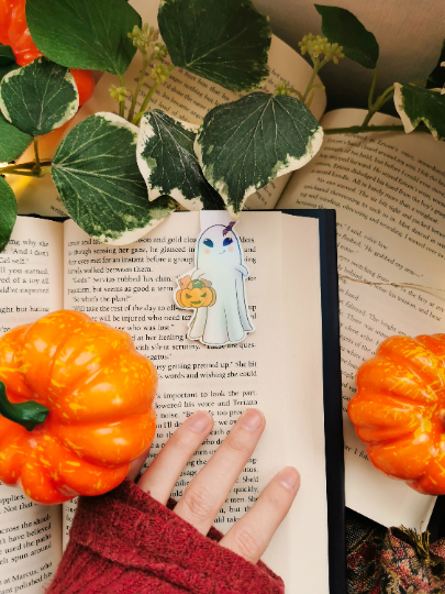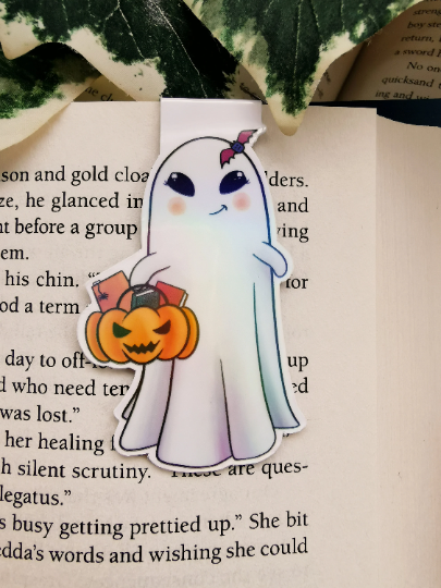 Mark your place in your book or planner with this spooky cute Books or Treat magnetic bookmark.
