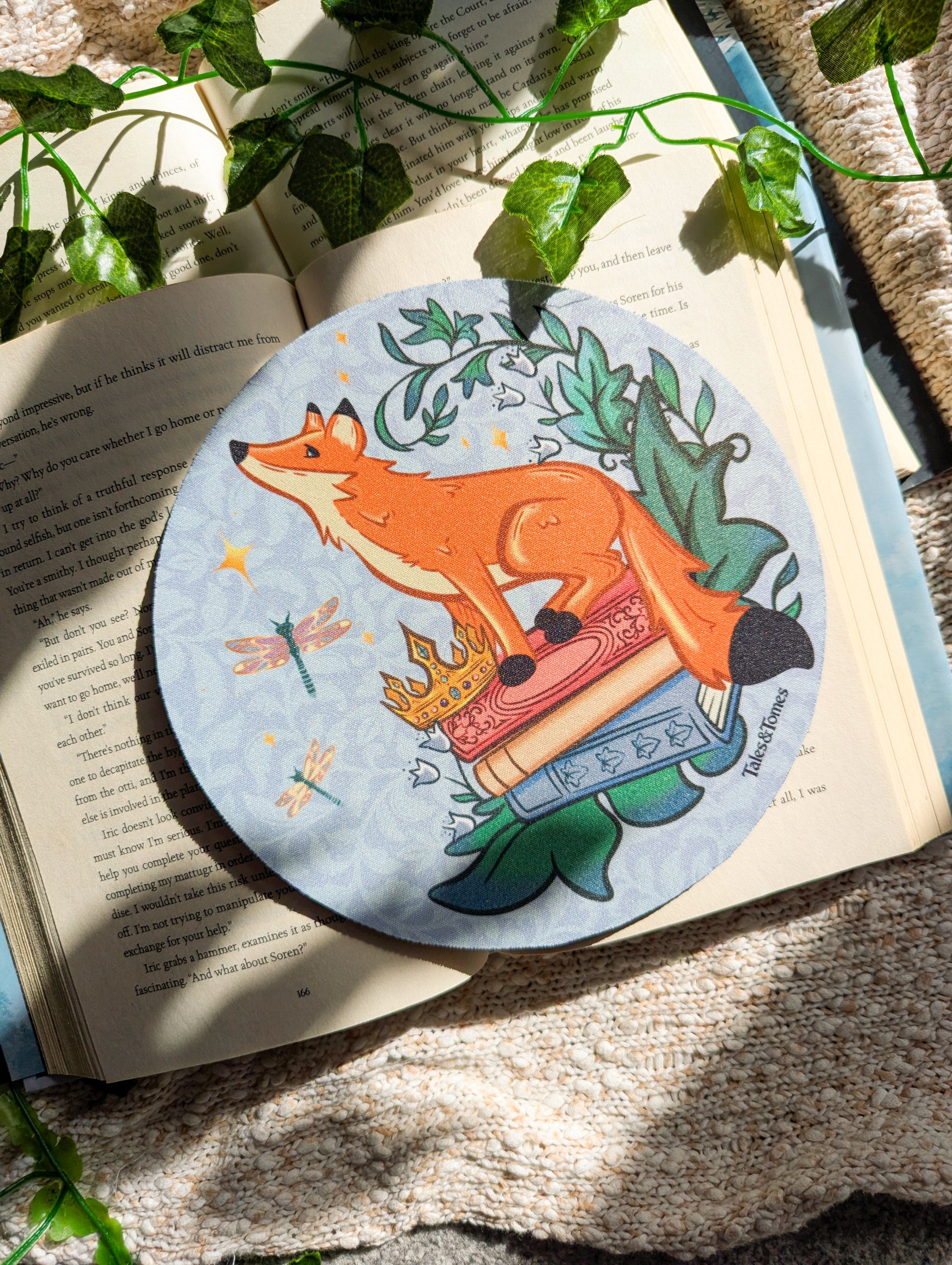 These whimsical mouse mats will add a touch of fairy tale magic and enchantment to your desk/work space. The design features our Fox King atop a book stack and surrounded by mystical flora and fauna.