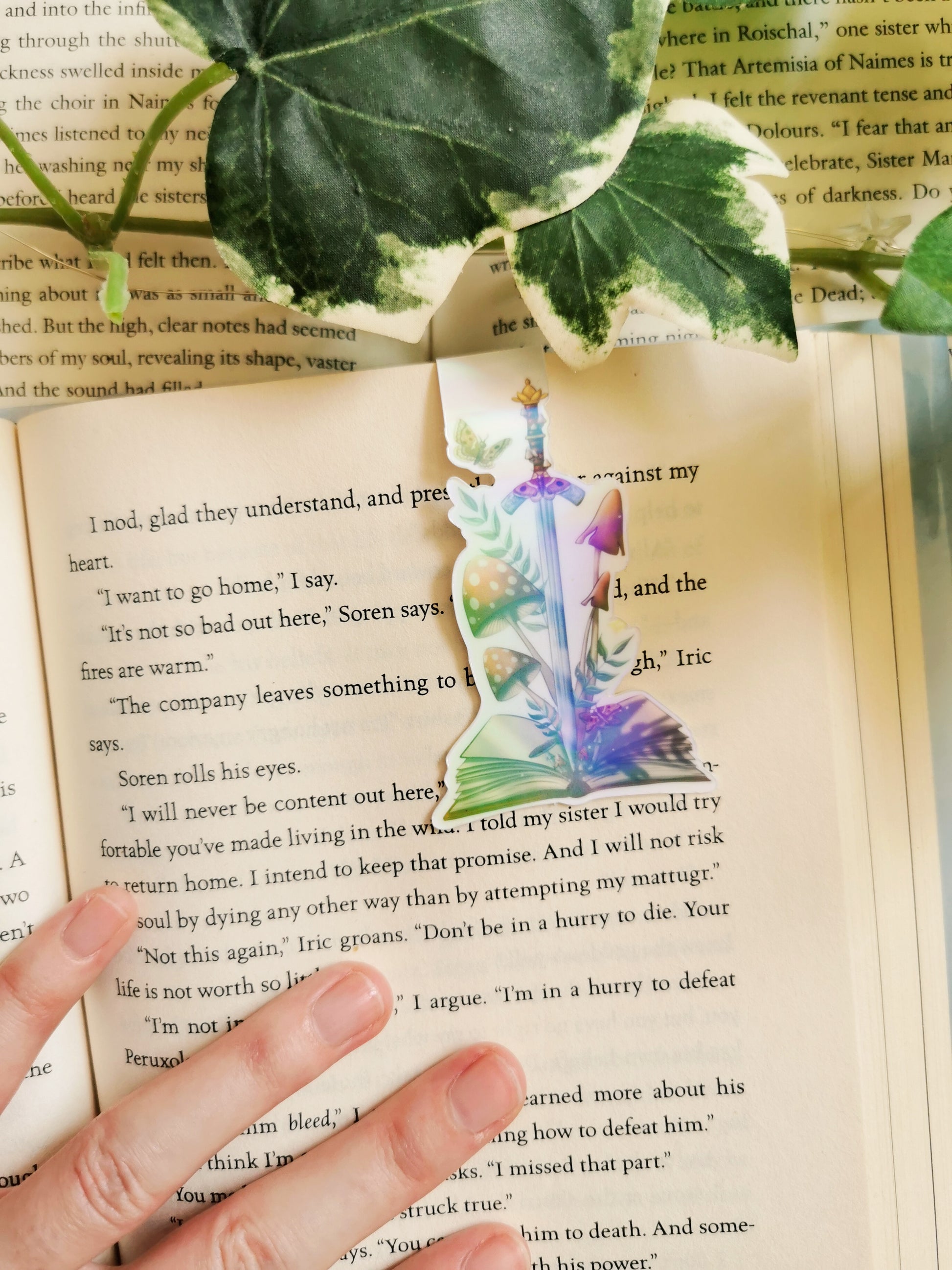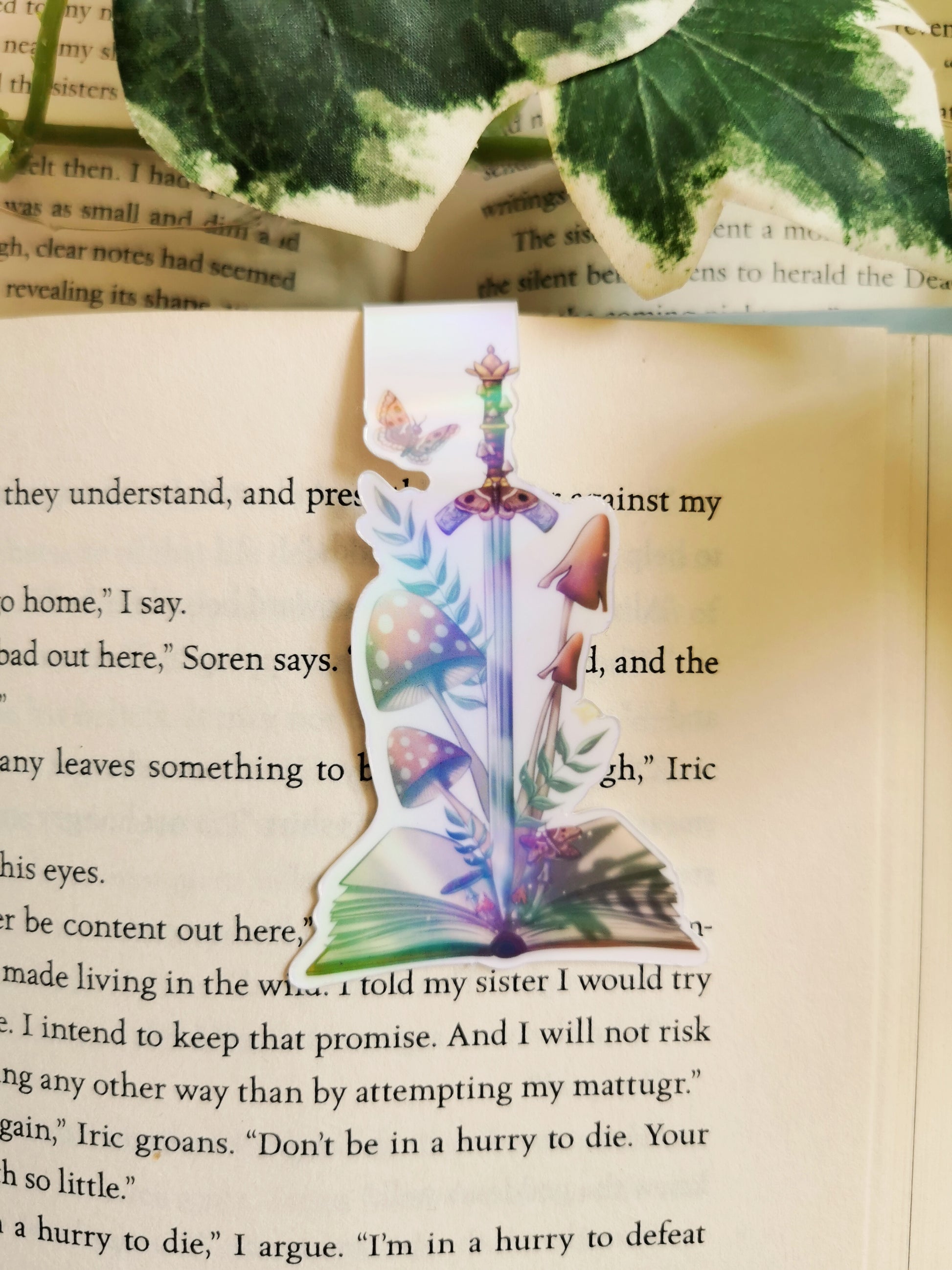 Mark your place in your book or planner this autumn/fall with this magic mushroom autumnal sword holographic magnetic bookmark.