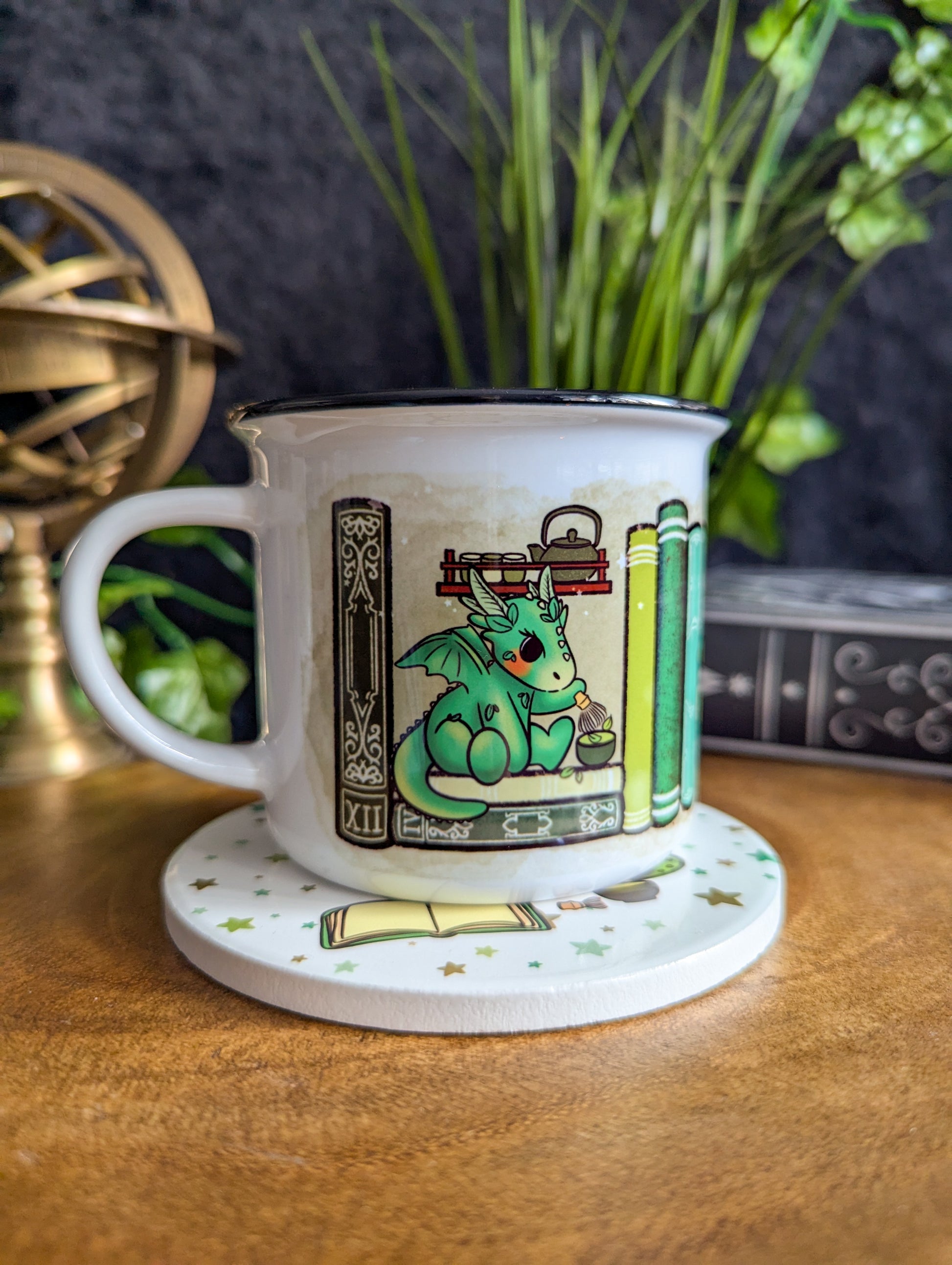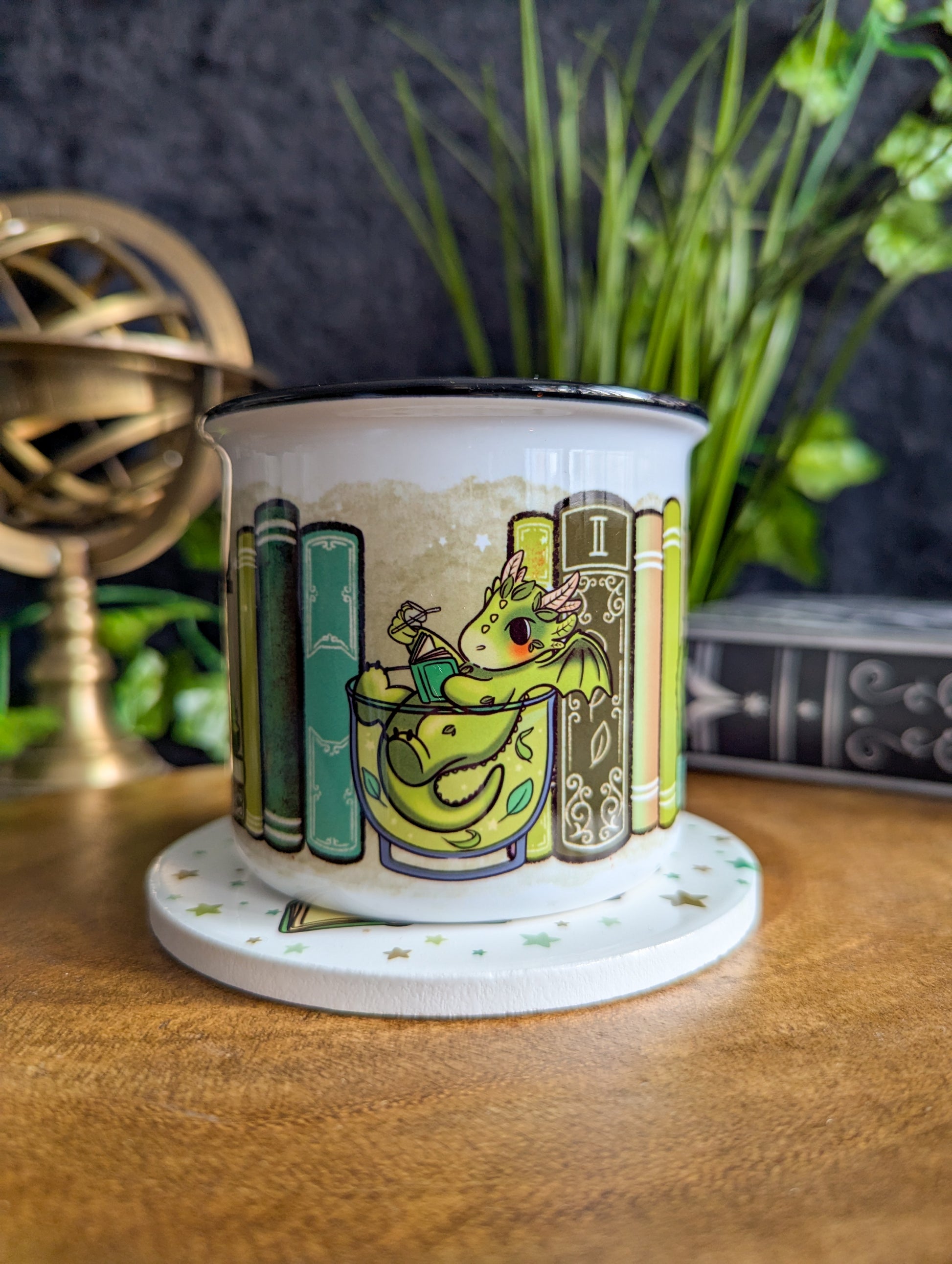 Matcha Dragons Bookshelf Ceramic Camper Mug.
