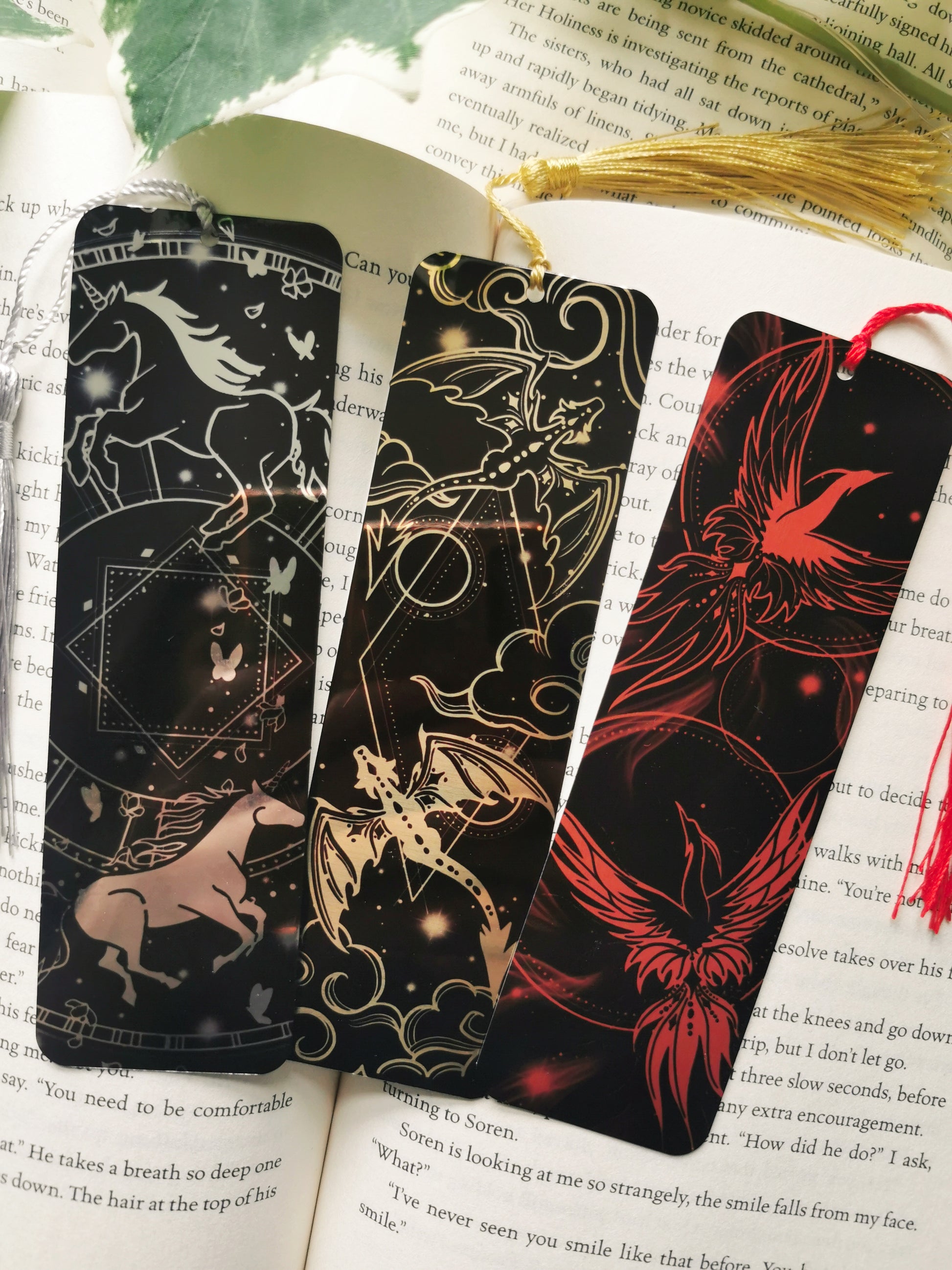 Original Illustration printed on high quality 6” x 2” aluminium 0.5mm & finished with a red tassel. Design features phoenixes, stars and whisps of fire in brushed copper. Please note the colour of the artwork/product can vary on each device screen.