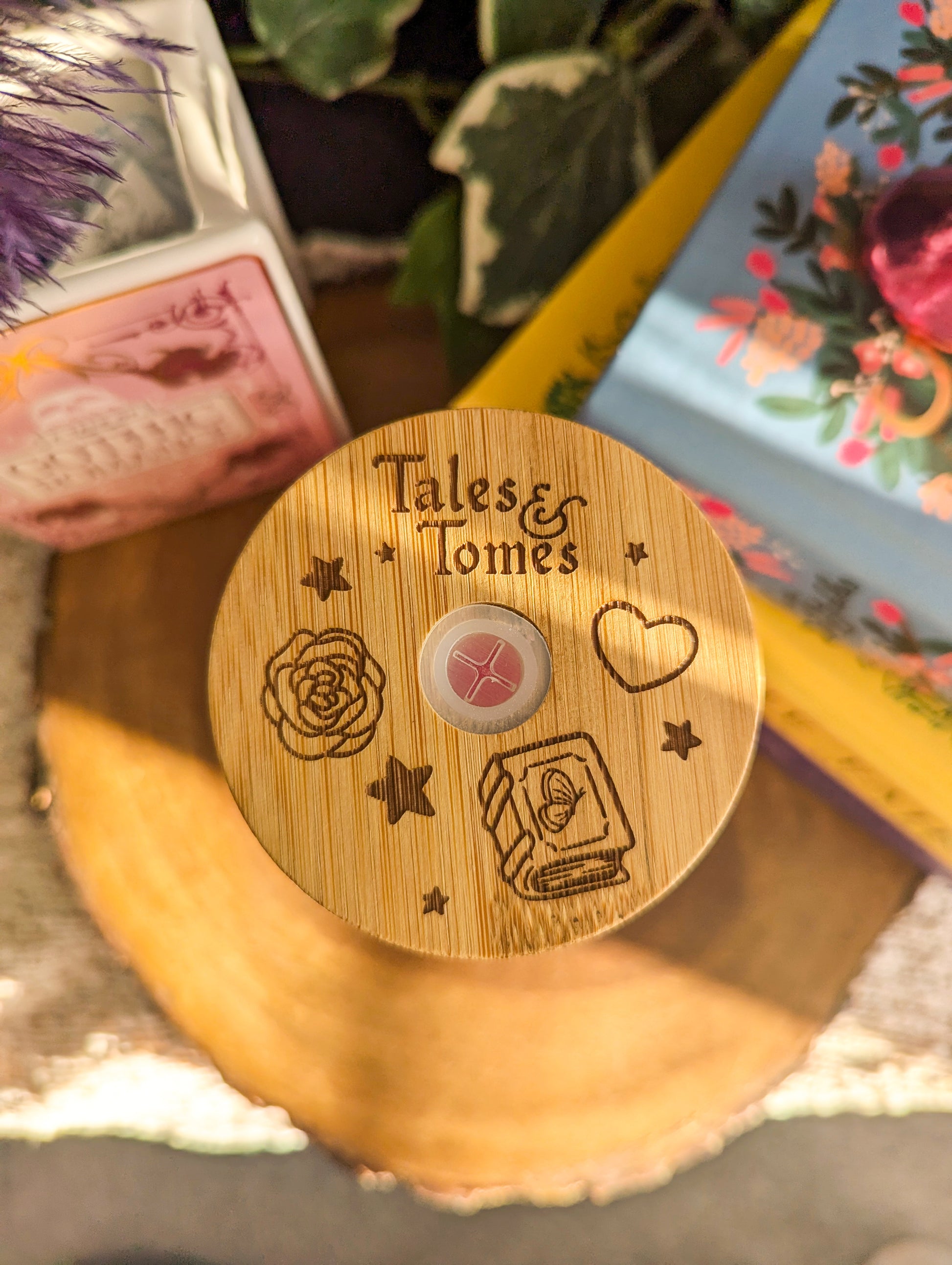 Pink Book Dragon Can Glass Cup with bamboo lid and straw. The perfect cup for your cold brews, sodas, juice and water for cosy reading sessions.