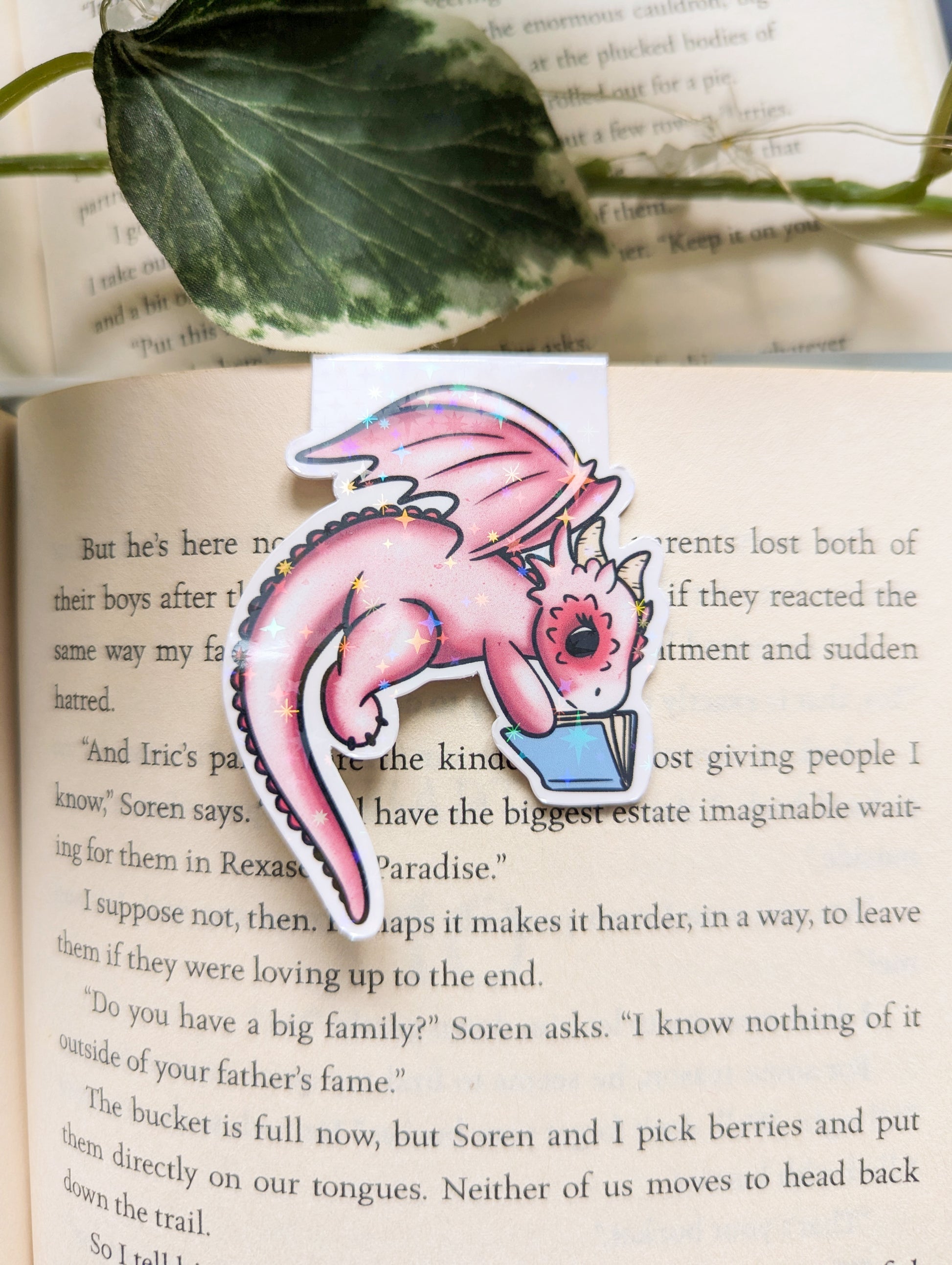 Mark your place in your current romantasy book or planner with this Pink Flying Dragon magnetic bookmark.