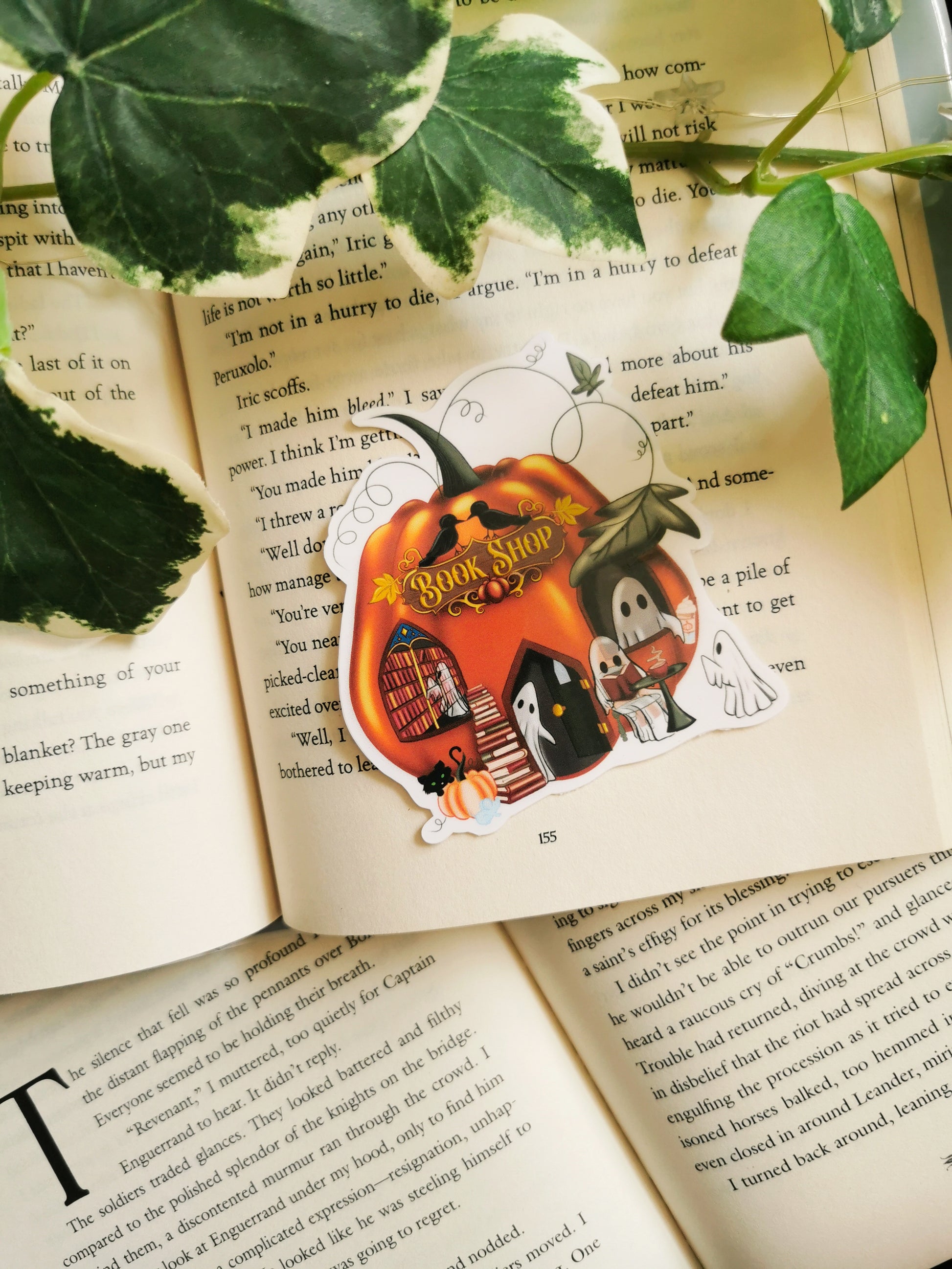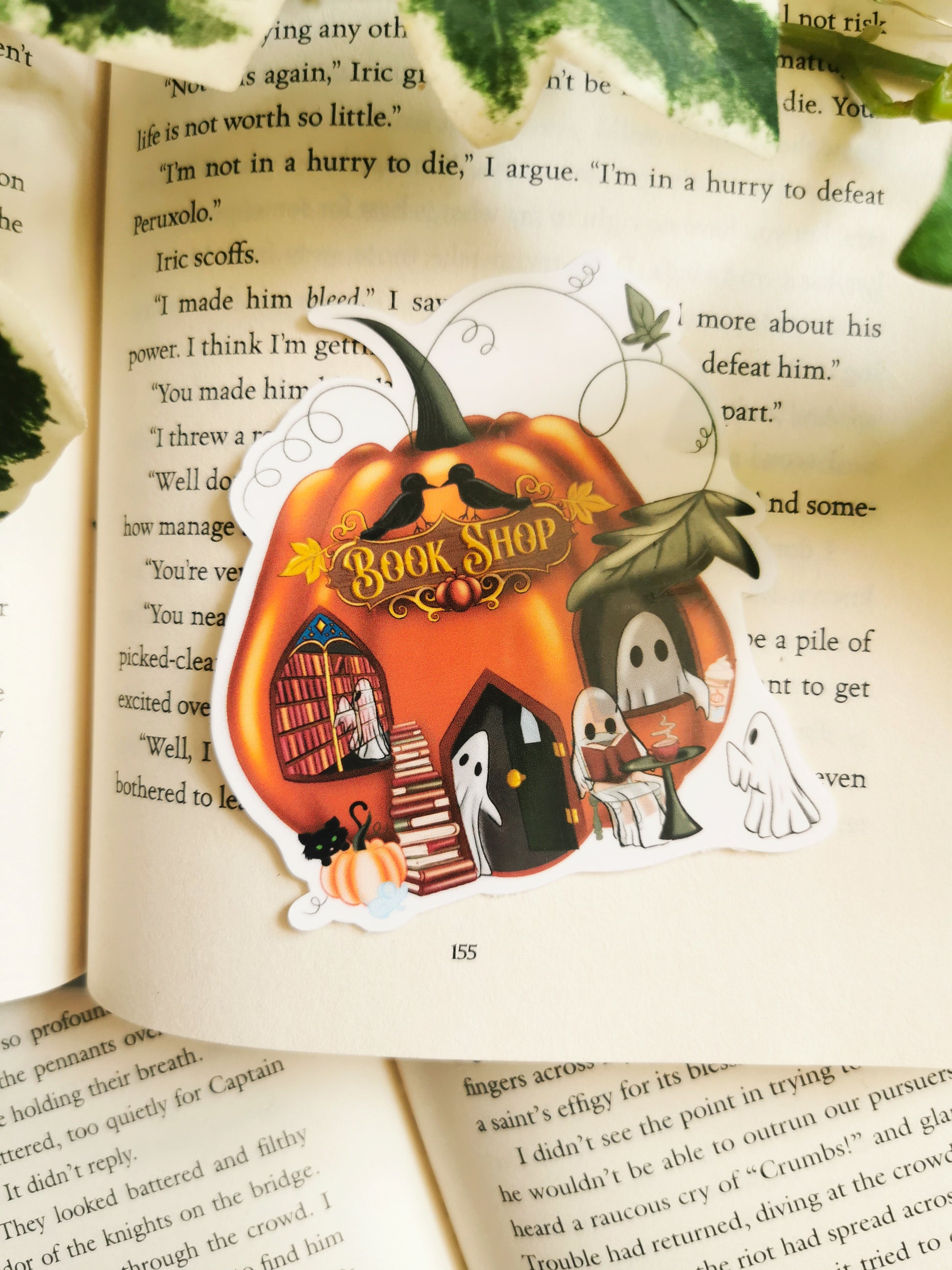 Represent your love for spooky reads with this Pumpkin Bookshop Sticker