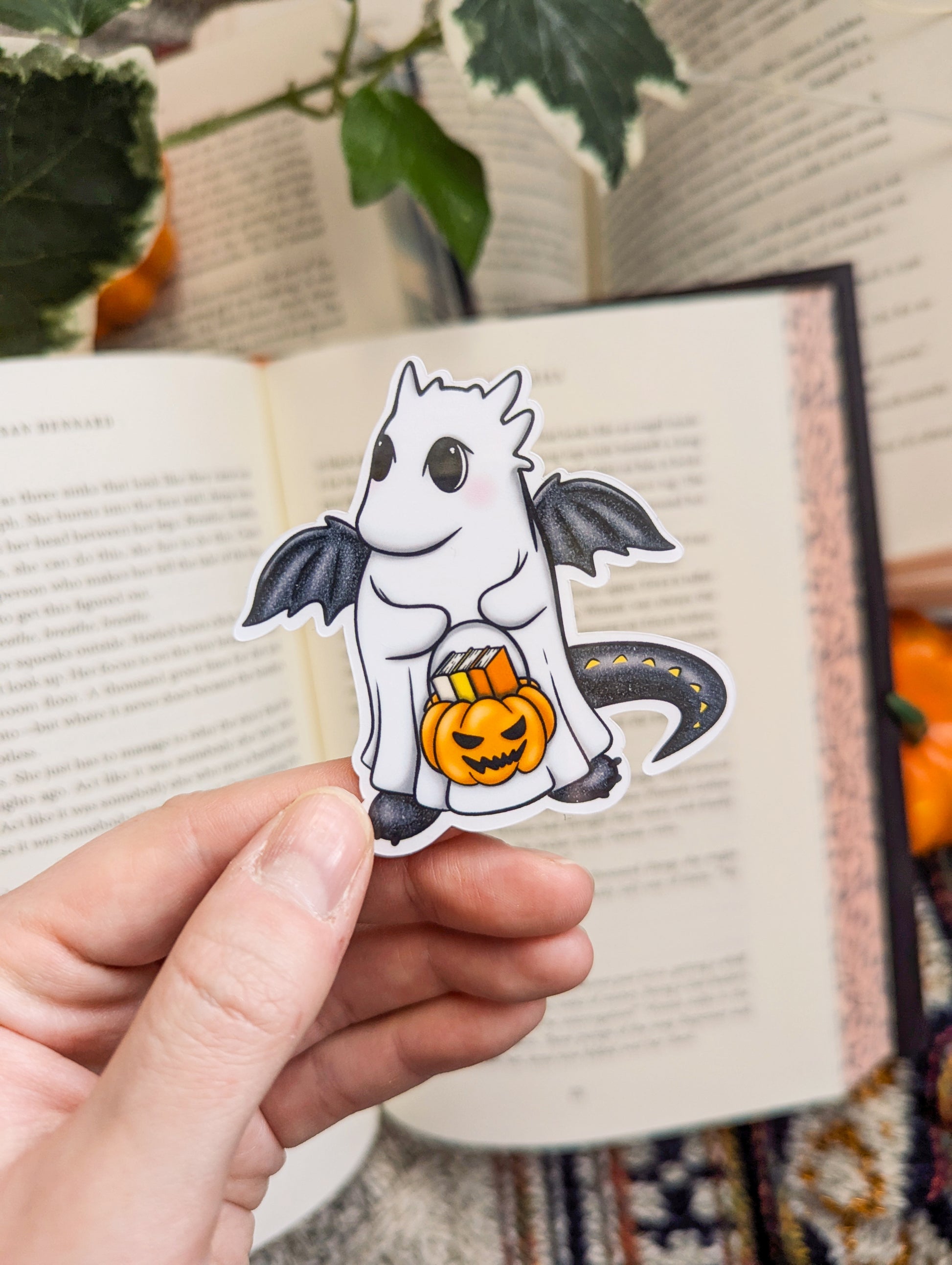 Represent your love of fantasy and autumn with this Spooky Dragon Vinyl Sticker. This is design 2 in the Spooky Dragon Collection. Check out the shop for more cute baby reading dragons.