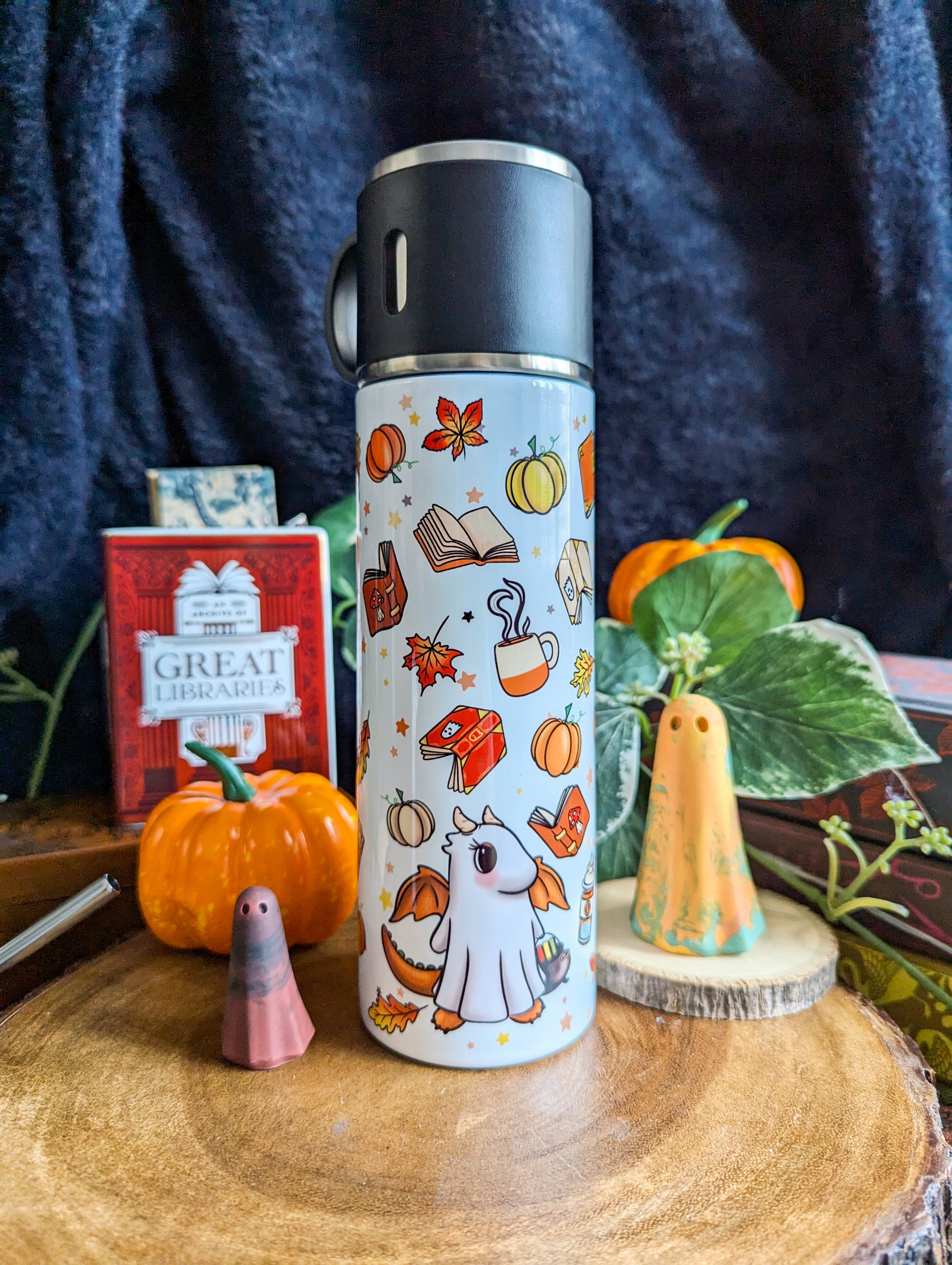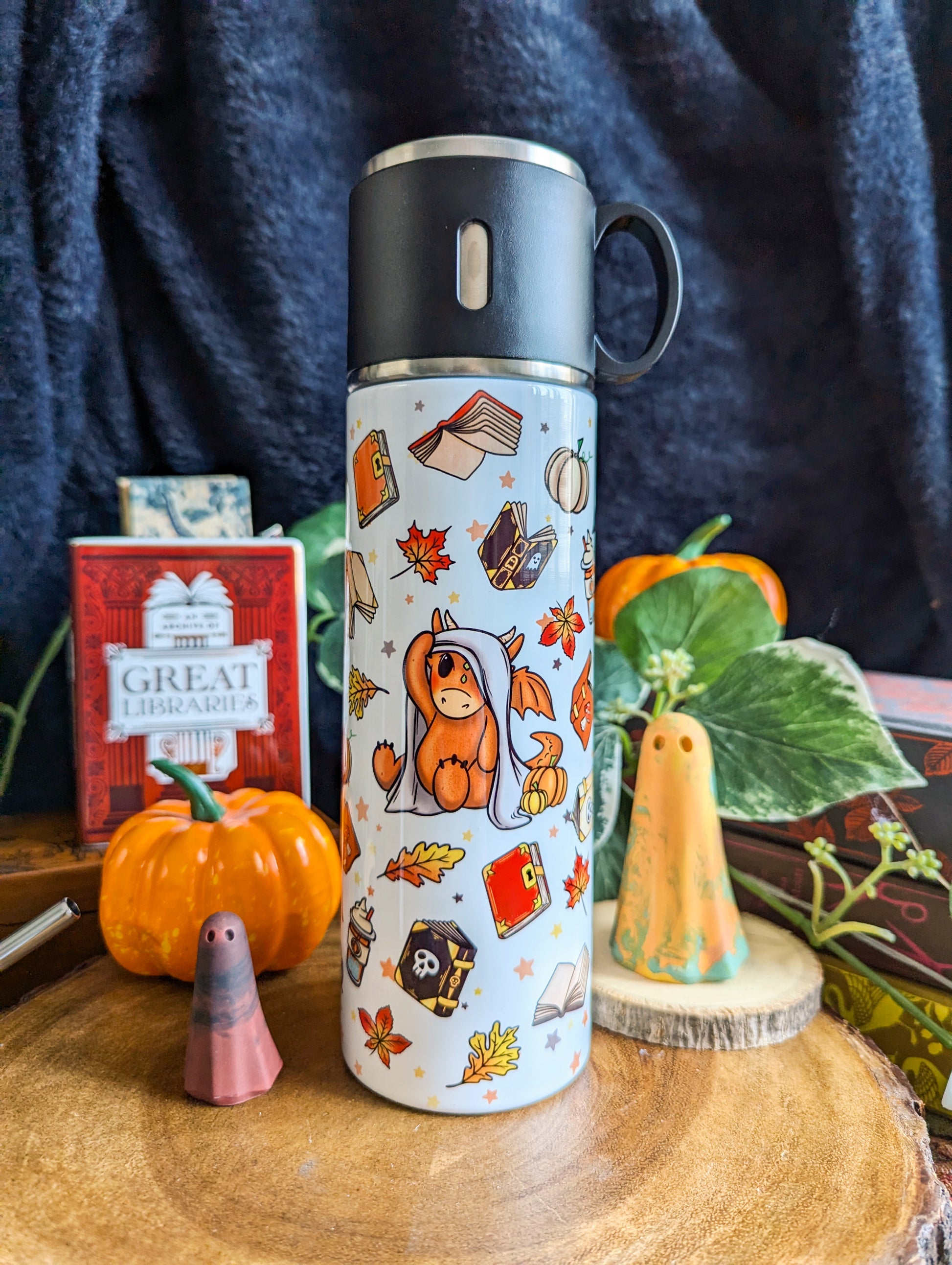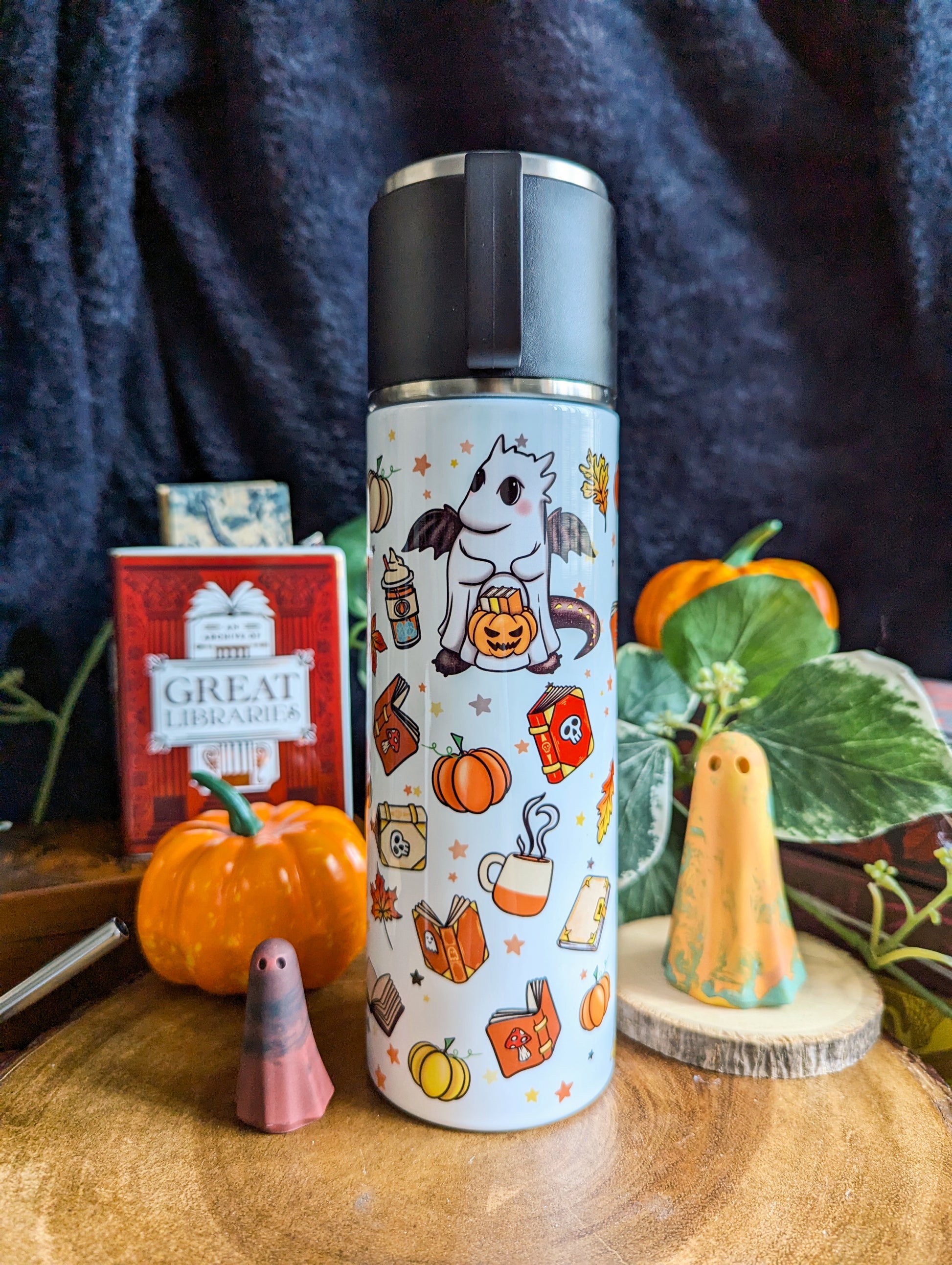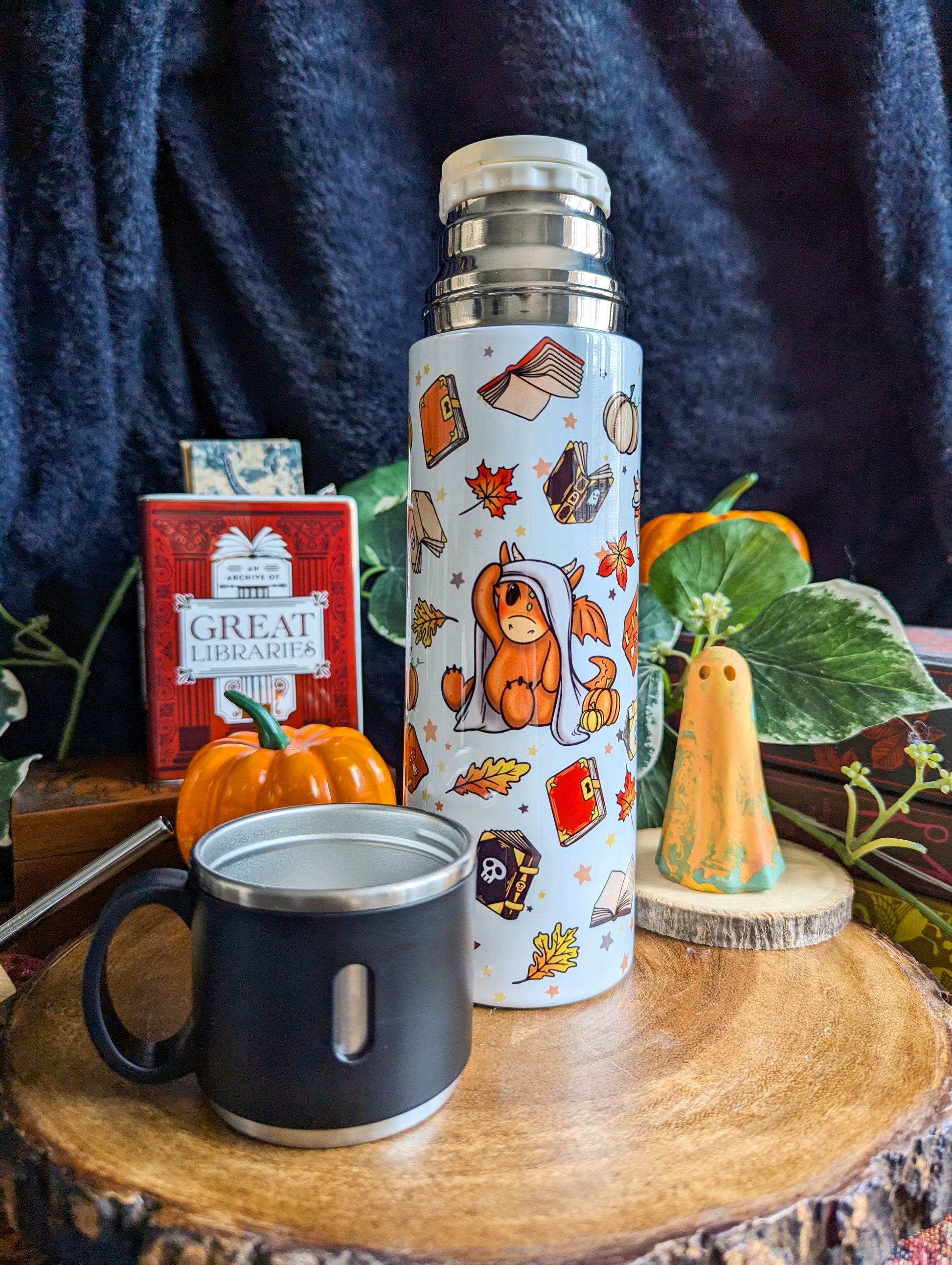 Spooky Dragons Stainless Steel Thermos keeps your drinks cool or hot! The perfect gift for any reader this autumn/fall. The lid doubles as a cup, so you can easily enjoy your hot beverage of choice on the go!