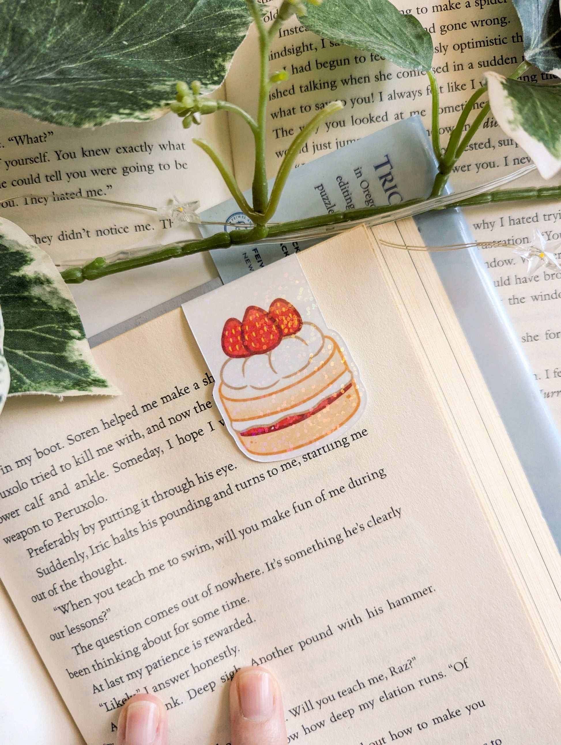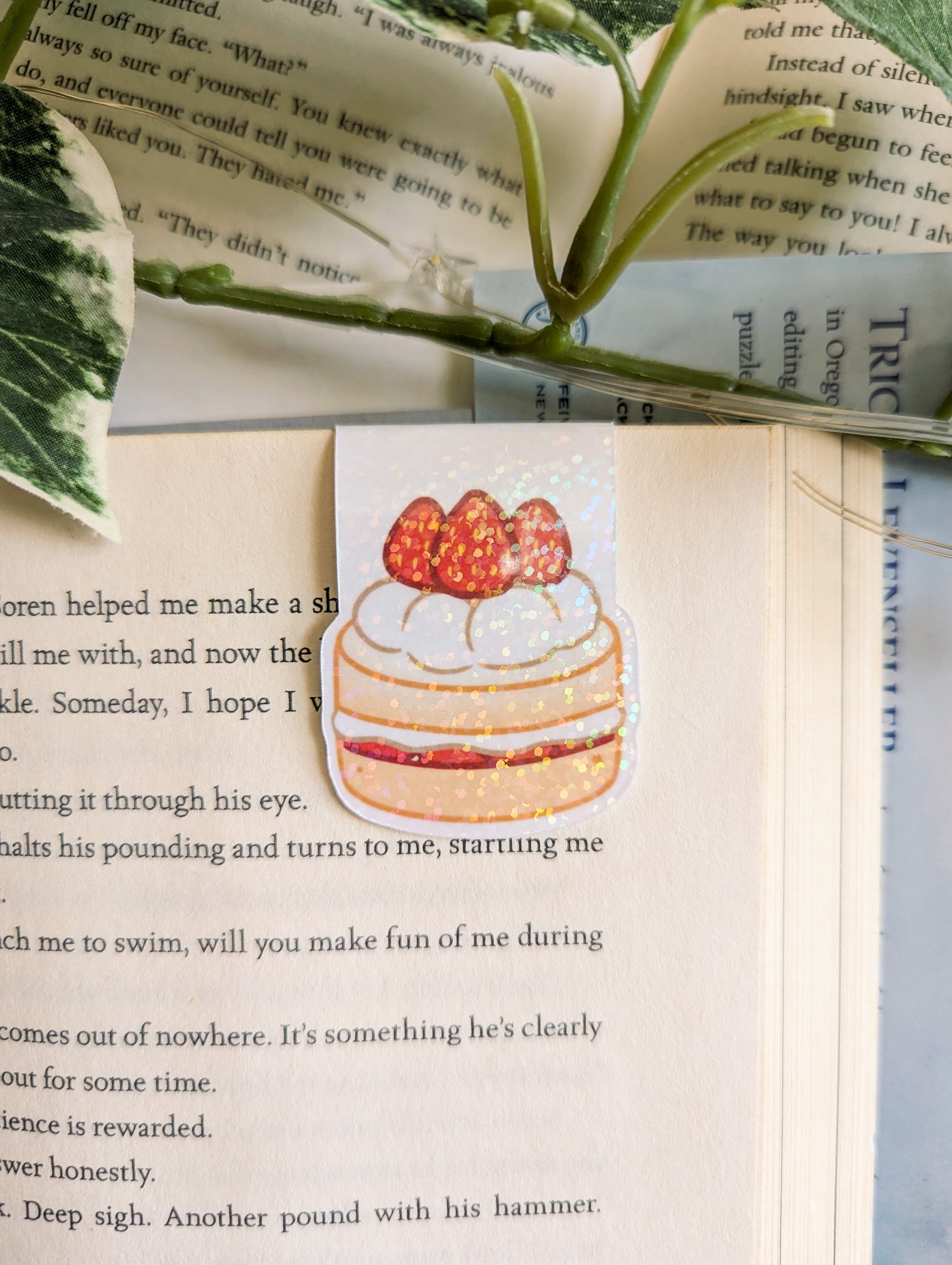 Mark your place in your current book or planner with this Strawberry Cake magnetic bookmark.