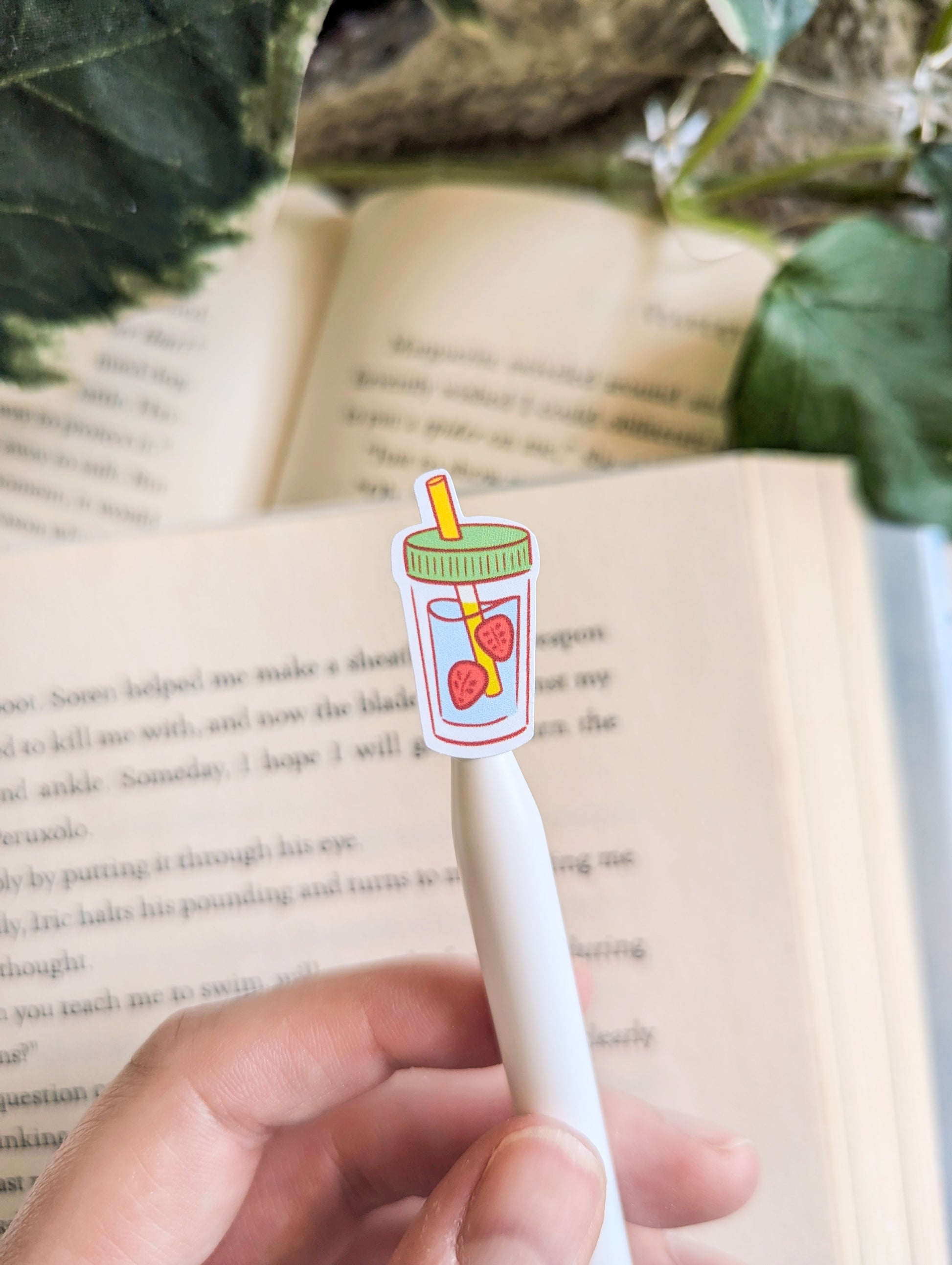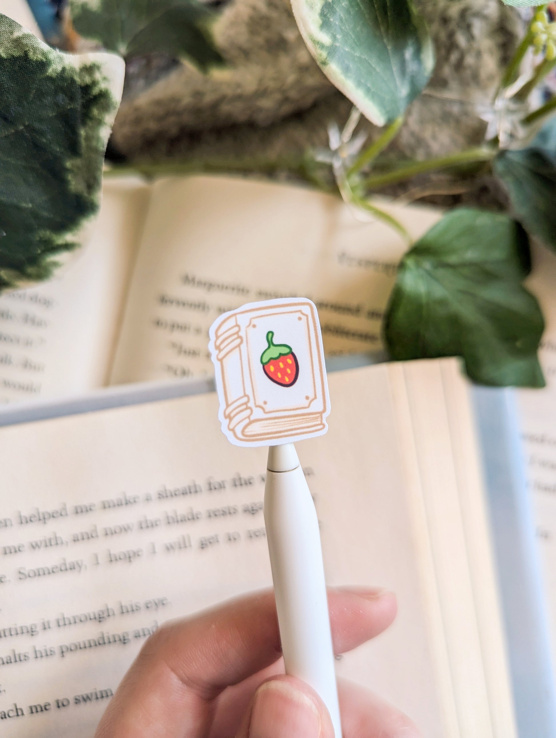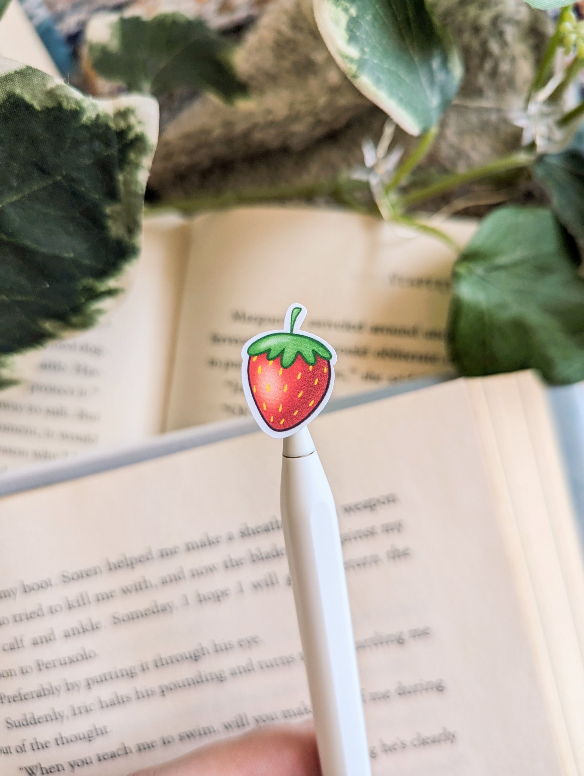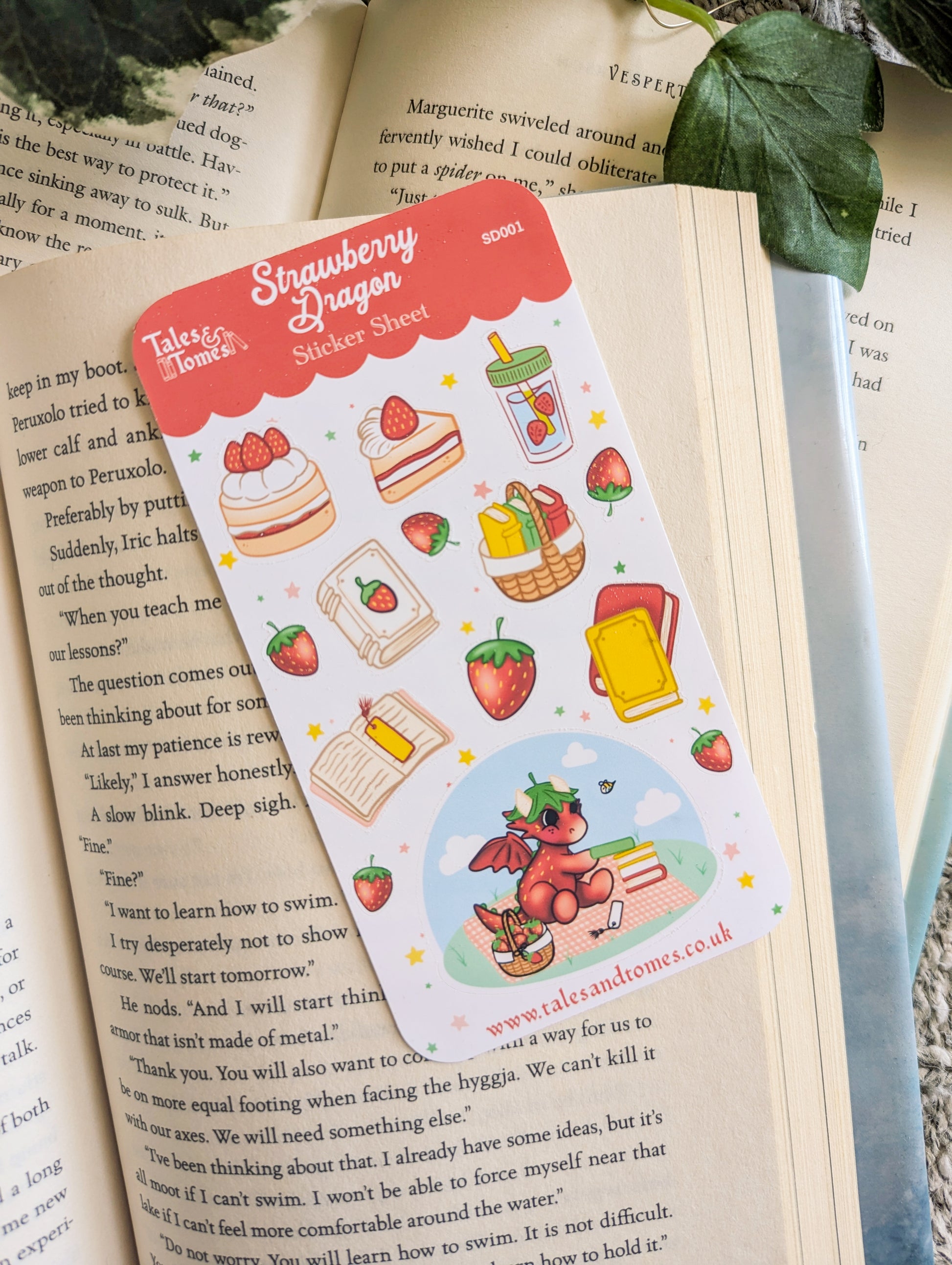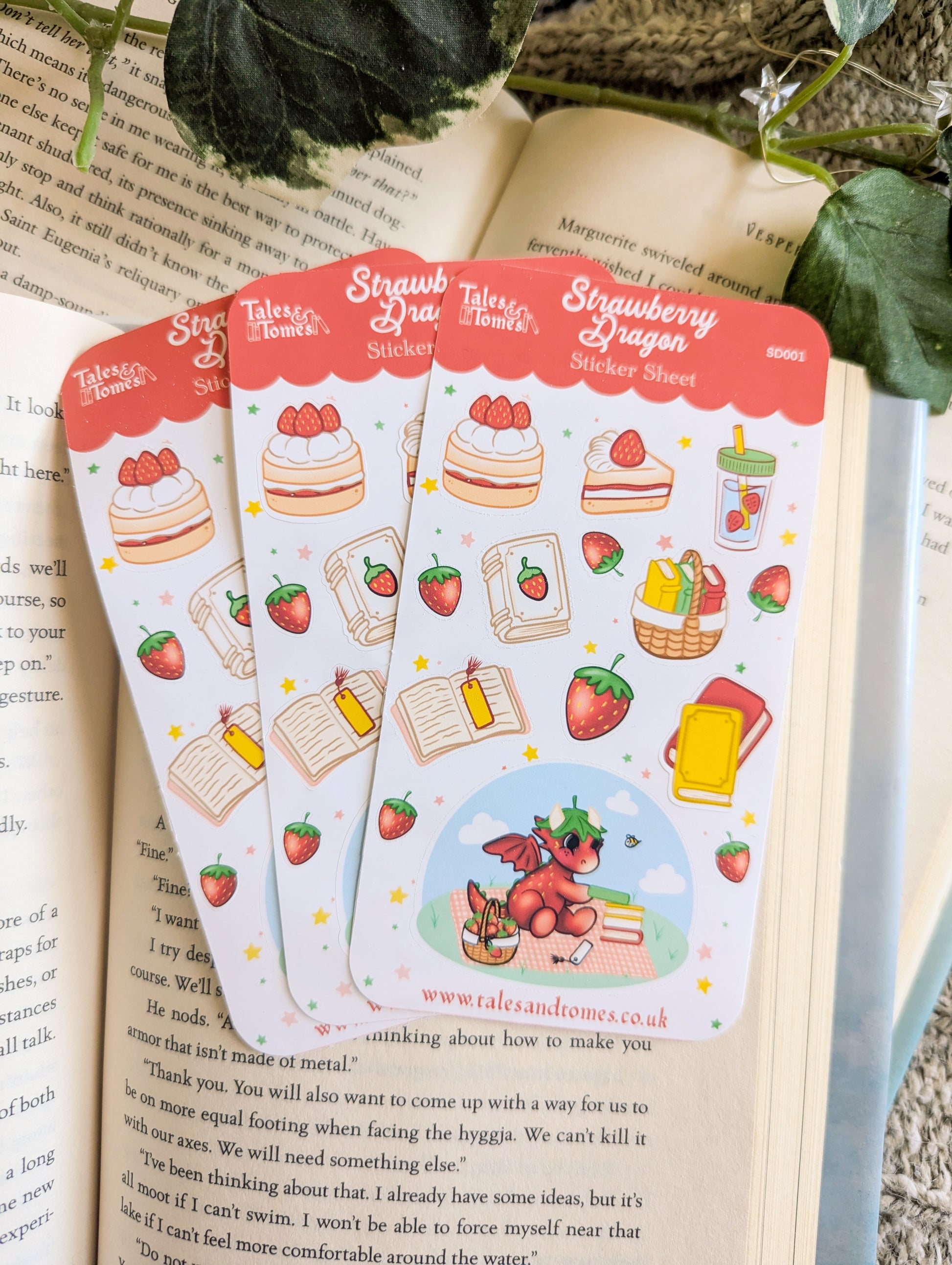 The sheet has a total of 14 stickers including the strawberry dragon, picnic basket of books, books, strawberry juice, cake and strawberries.